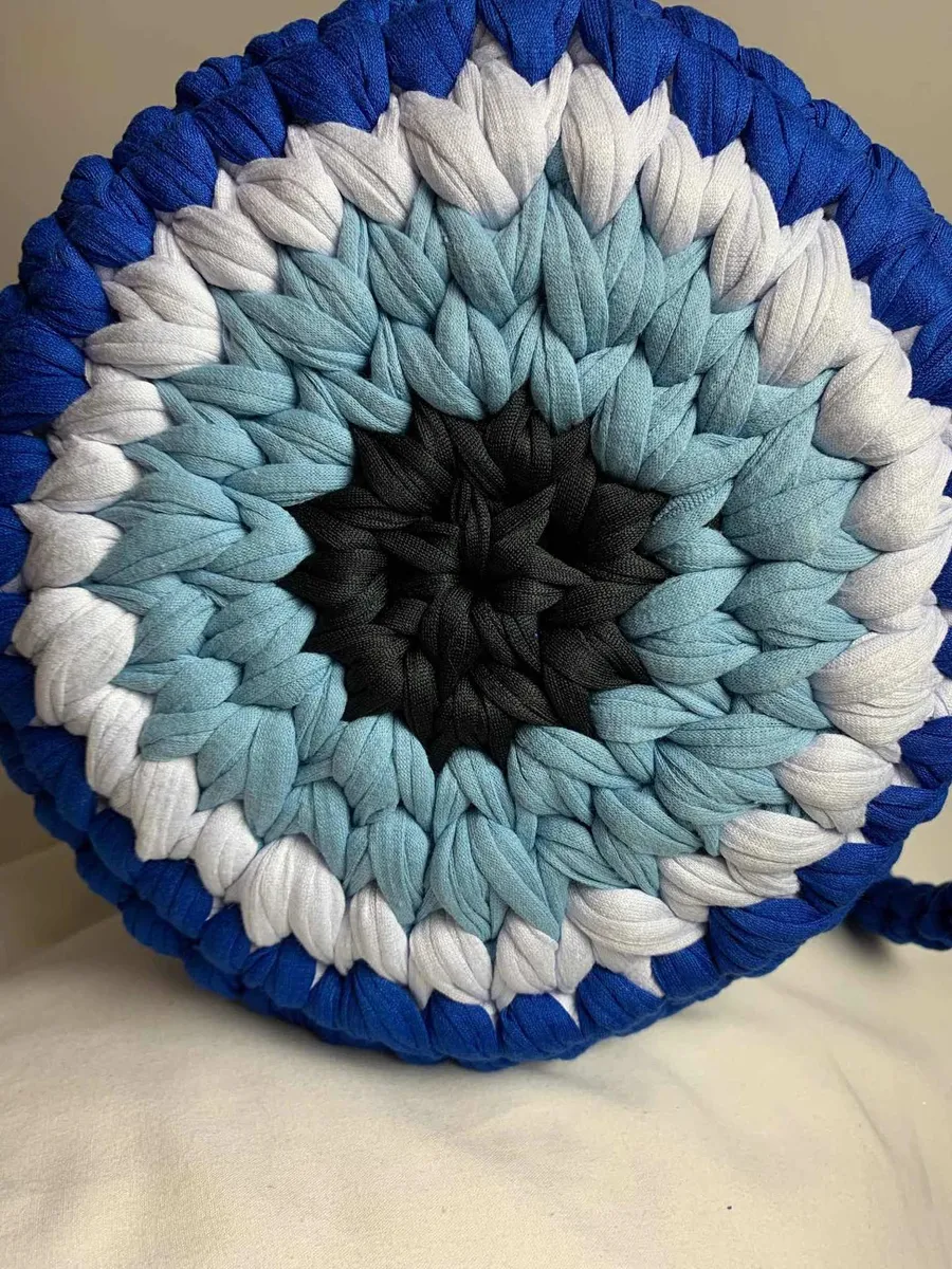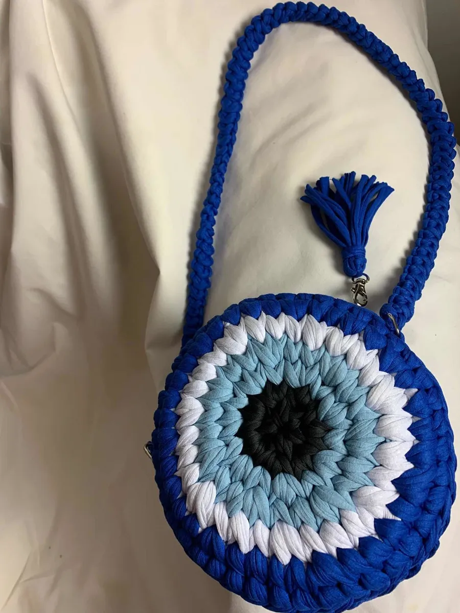 Bolsa Transversal Redonda Boho Feminina Azul Croche Azul Liso Níquel