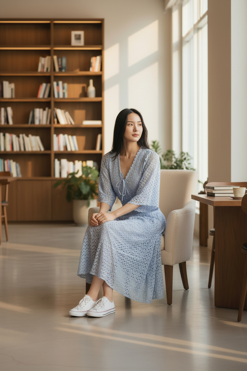Mangas largas soltas 7/8 e saia bem rodada!