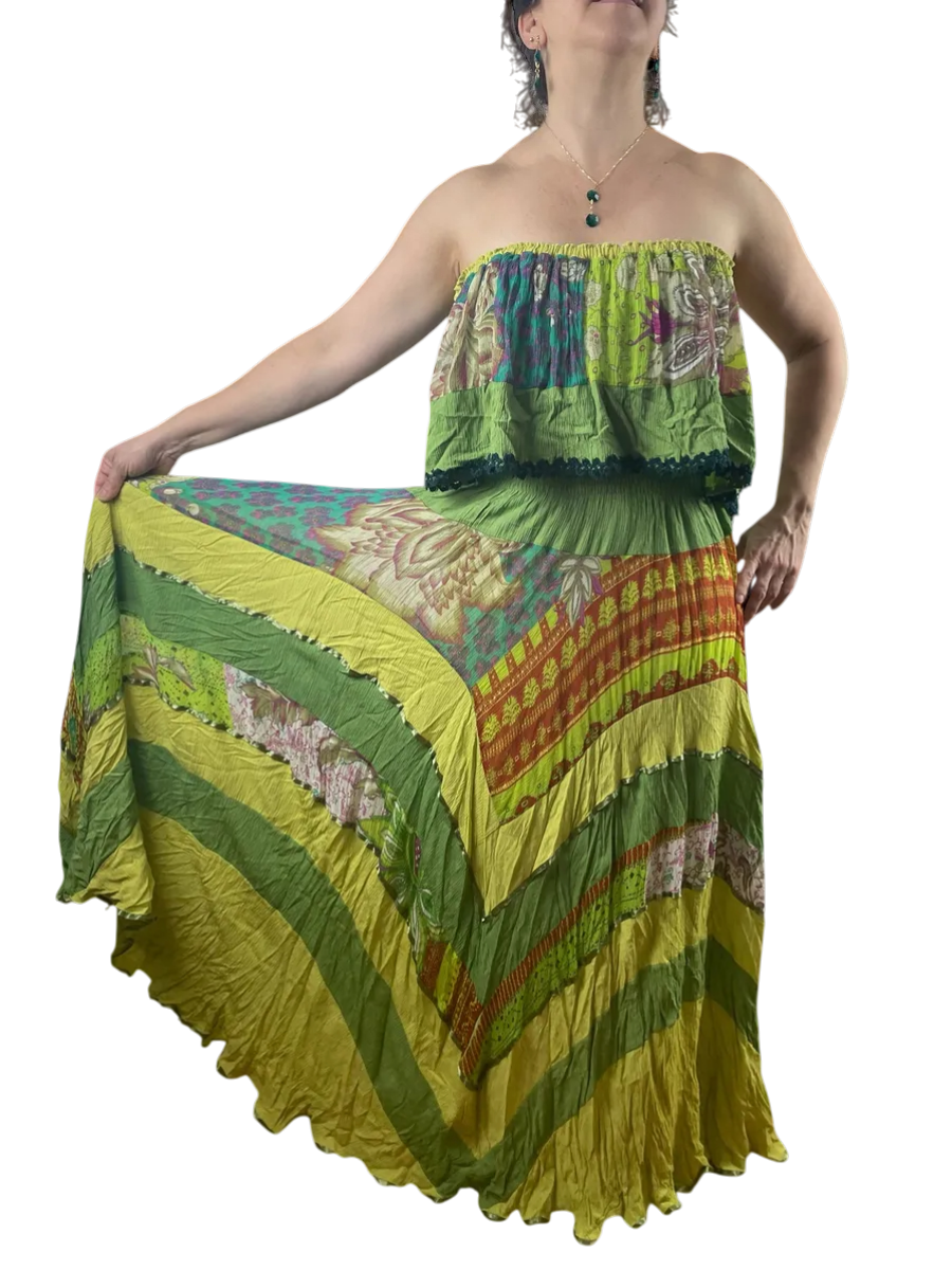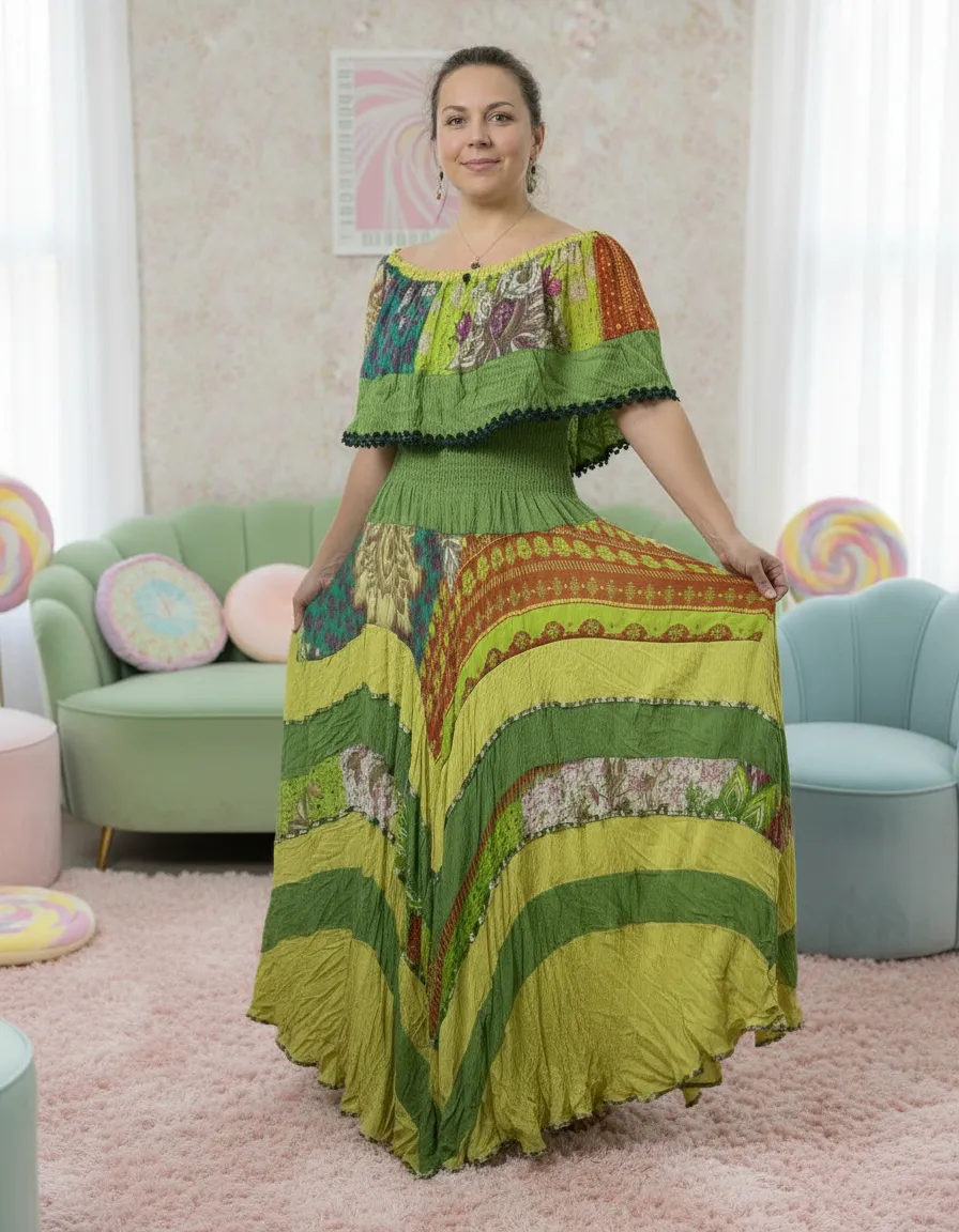 Super exclusivo em modelo cigana longo no tom verde claro com renda maravilhosa. Bastante tecido e bem rodado!