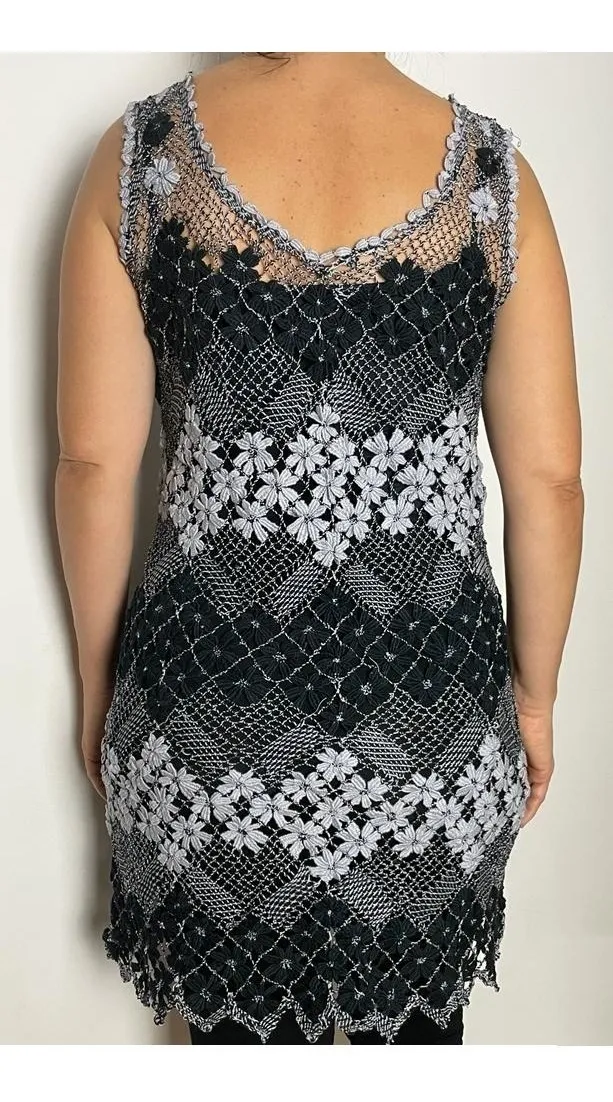 Vestido Renda Bilros Preta Com Cinza