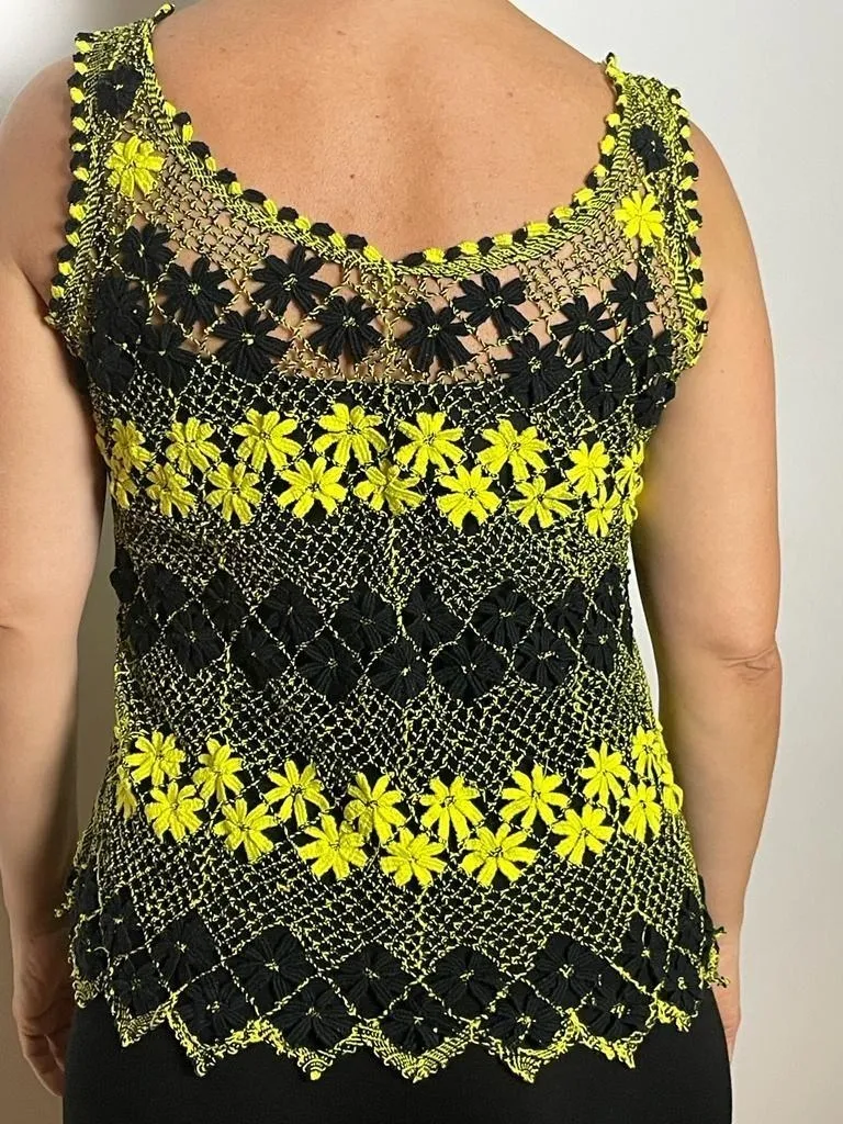 Blusa Regata Renda Feminina Amarela E Preta Artesanal